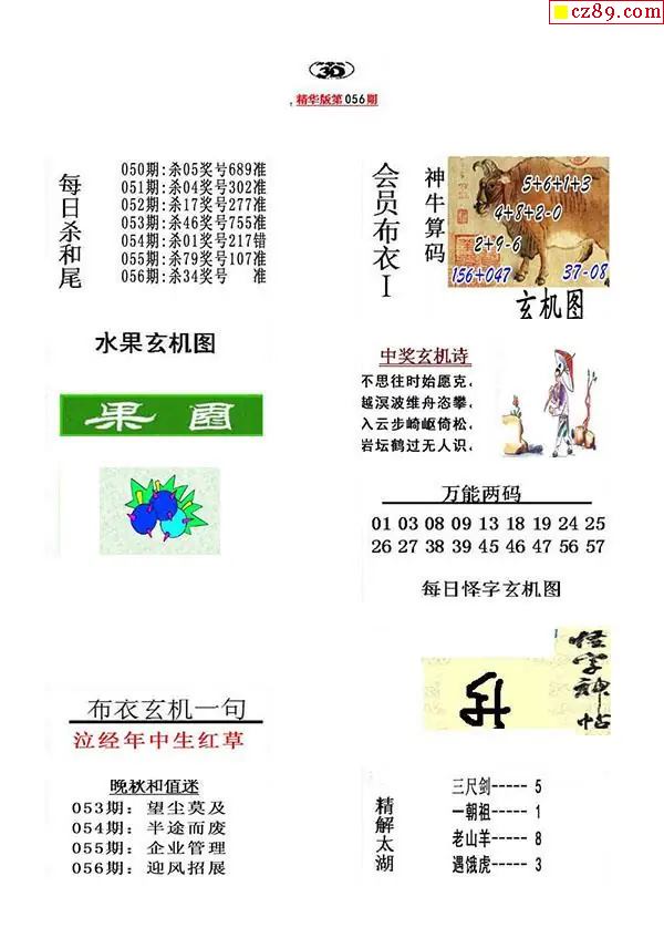 真精华布衣报2026056期3d图谜