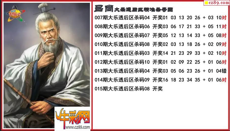 > 大乐透015期吕尚后区精准杀号图